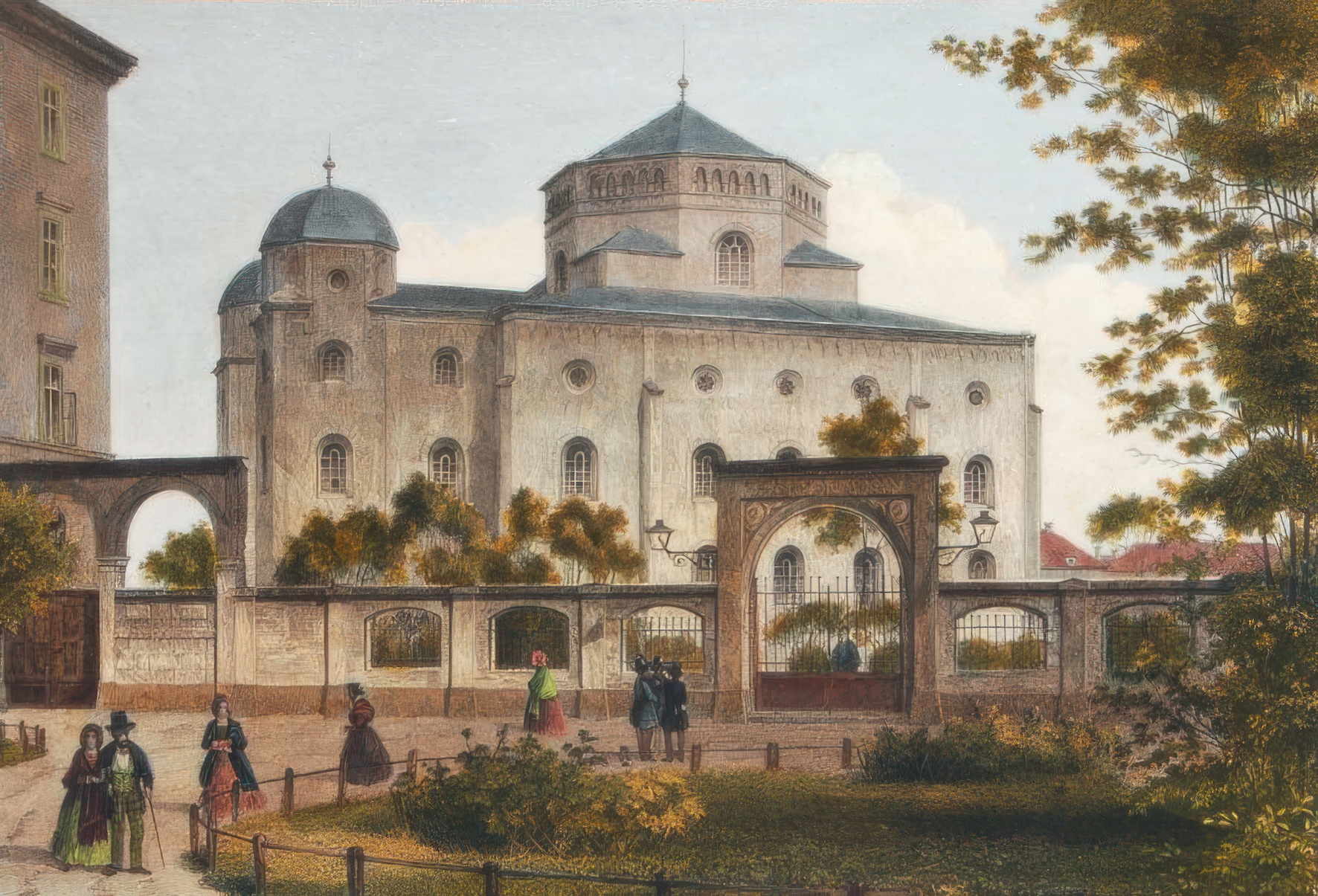 Bild 1: Alte Dresdner Synagoge von Gottfried Semper, erbaut 1838–1840. Lithographie von Louis Thümling um 1860. © Wikipedia/Gemeinfrei