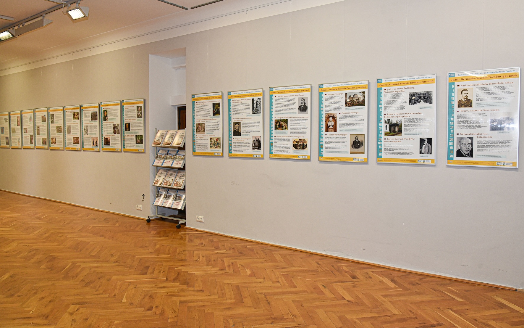 Die erste Ausstellung entstand bereits im Jahr 2021 im Rahmen des Bundesprogramms „1700 Jahre jüdisches Leben in Deutschland“ und war an vielen Orten der sächsischen Landeshauptstadt zu sehen. In diesem Jahr erfolgte die Aktualisierung und Anpassung an das Programm Tacheles 2026. Jetzt heißt die Schau „Juden: Germania-Saxonia-Dresden. 321–2026“ und besteht aus 26 großen Plakaten, die in drei Sprachen (Deutsch, Englisch und Russisch) über die Geschichte des Erscheinens der Juden auf deutschem Boden, ihr Auftreten in Sachsen, die ersten Erwähnungen in Dresden und über das Schicksal der jüdischen Gemeinde der sächsischen Hauptstadt bis heute berichten.